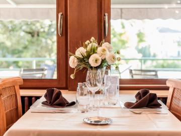 Delicious cuisine, quietly situated room with a view of the beautiful garden and river.