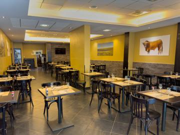 A perfect stopover in Gévaudan on the way to our holiday destination, close to the A75 motorway. The rooms are spacious and clean, very quiet, but a little dated (squeaky shower curtain and closet door, creaking bedding). The staff is very welcoming and friendly; you can hear laughter, and you can tell they enjoy working together, which makes for a very pleasant service. We had dinner there; the local cuisine was excellent and plentiful—a real treat! It's a shame the dining room decor is a bit cold.