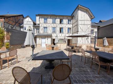 is set within a preserved countryside environment, close to Rouen, offering a natural retreat that is easily accessible from Paris and the main Norman routes. The setting blends peaceful lanes, half-timbered houses and historic market halls, creating an atmosphere that invites guests to discover an authentic and soothing way of life. The hotel is close to the Forest of Lyons, a true green haven where shaded paths can be explored, pure air breathed in and generous nature contemplated throughout the seasons. The location encourages guests to resonate with the village’s gentle rhythm, between heritage, walks and Norman douceur de vivre.