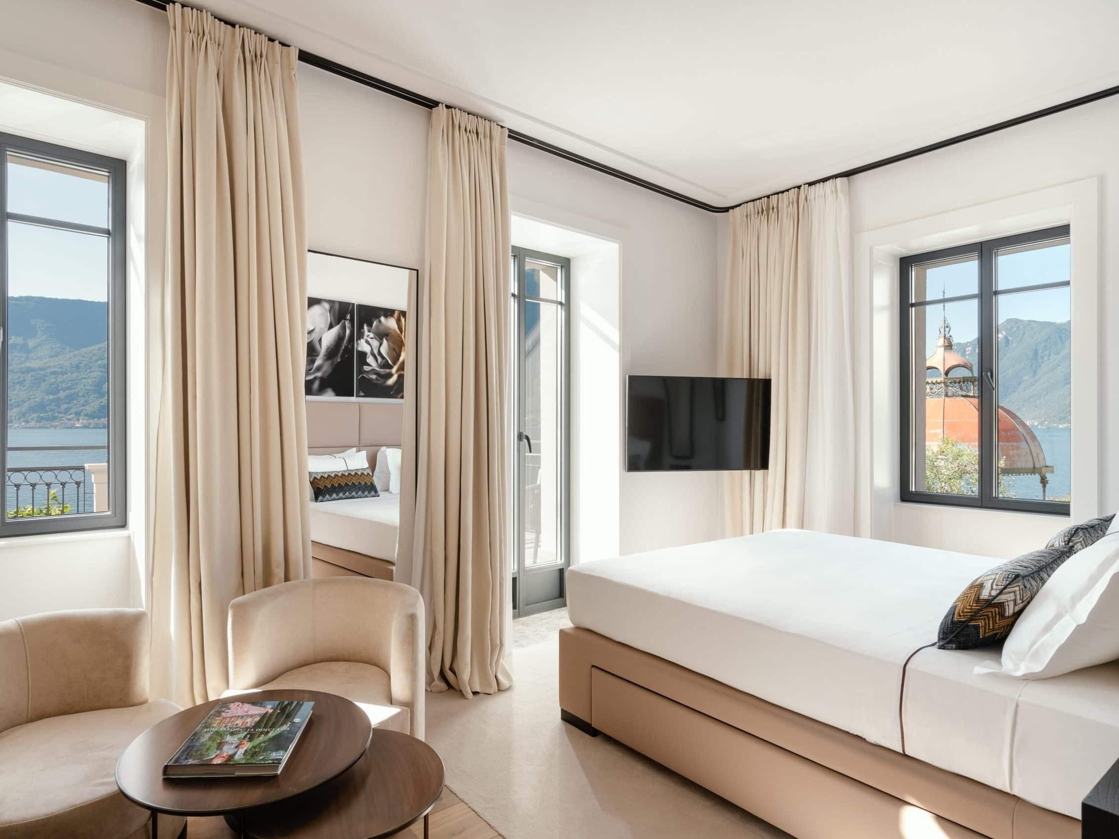 The stay experience stands out through an intimate and contemporary atmosphere shaped by refined architecture and clean lines opening onto the panorama. The rooms, designed as luminous retreats, combine natural materials, balanced volumes and inspiring views over the lake or surrounding hills, creating an immediate feeling of calm and elegance. This 5-star hotel cultivates a discreet aesthetic where comfort lies in thoughtful details, from high-quality bedding to harmonious colors and textures. The stay encourages disconnection, inviting guests to savor silence and the softness of Italian light. The restaurant extends this sensory immersion with contemporary cuisine inspired by Lombard traditions, highlighting seasonal products and a creative interpretation of local flavors, guided by authenticity and refined simplicity.
